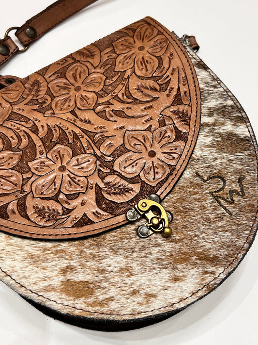HANDMADE Genuine Cowhide Half-Moon Tooled Crossbody Bag