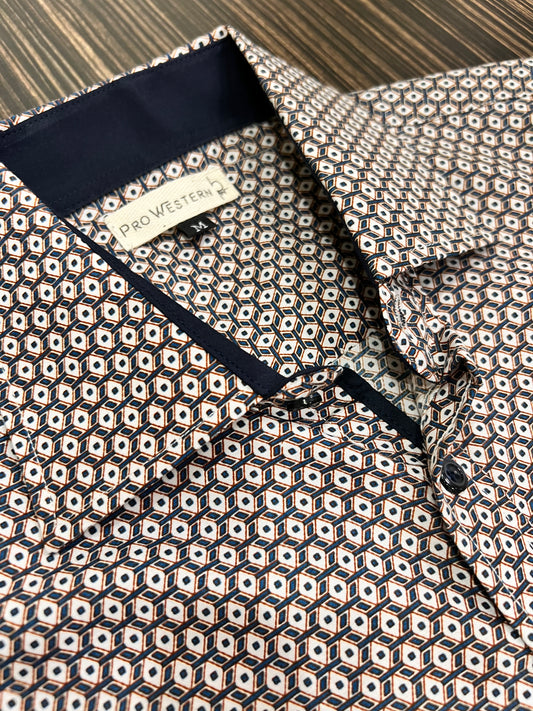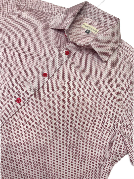 Men's Long Sleeve Burgundy Geo Print Shirt