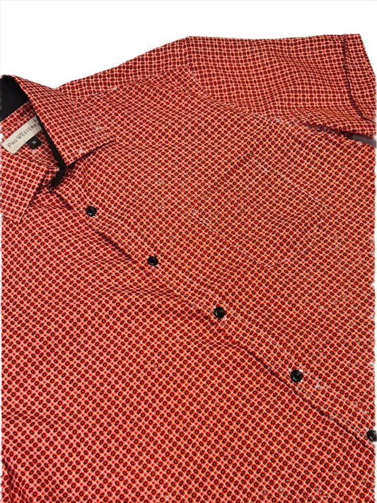 Men's Short Sleeve Red-Orange Geo Print Shirt