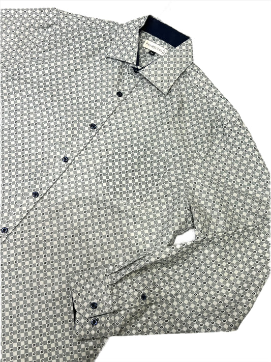Men's Gray Long Sleeve Geo Print Shirt